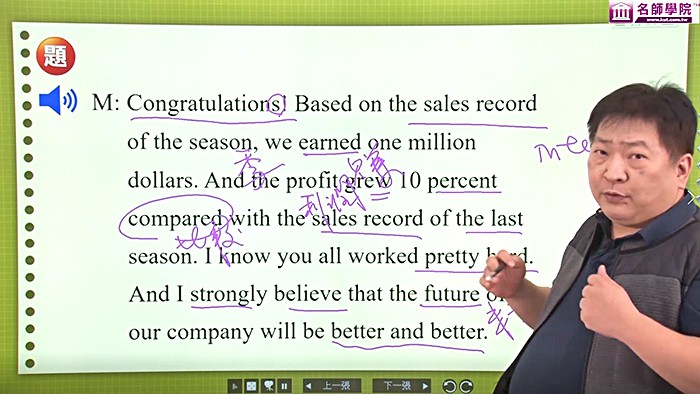 V 聽力測驗:能聽懂日常生活相關的淺易談話,課程中以詳解圖片與選項關聯,輕鬆掌握得分關鍵。