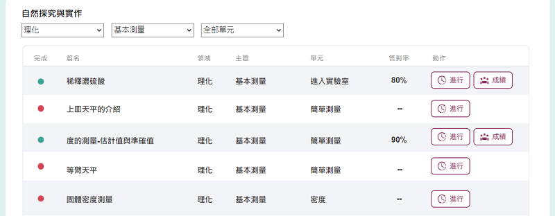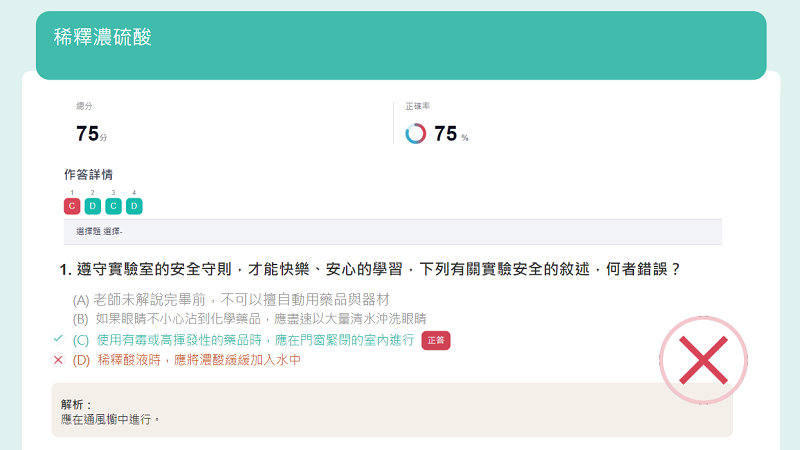 ●實驗後,也能讓學生複習,並透過題目驗收學生學習成效。