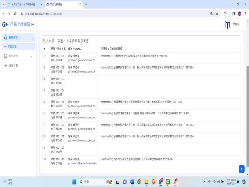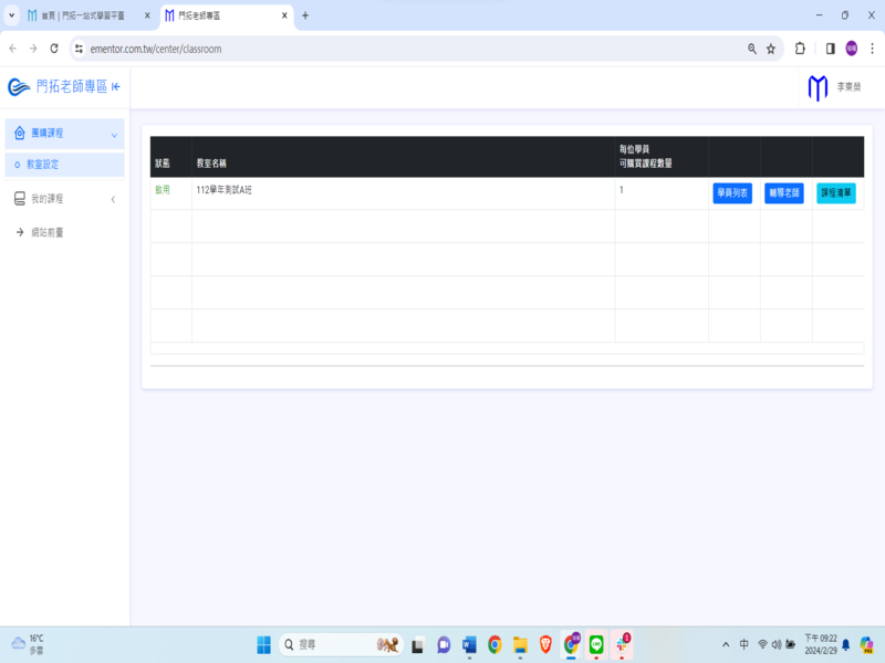 (7)學生與老師依據說明操作後,系統會創建線上教室與分班