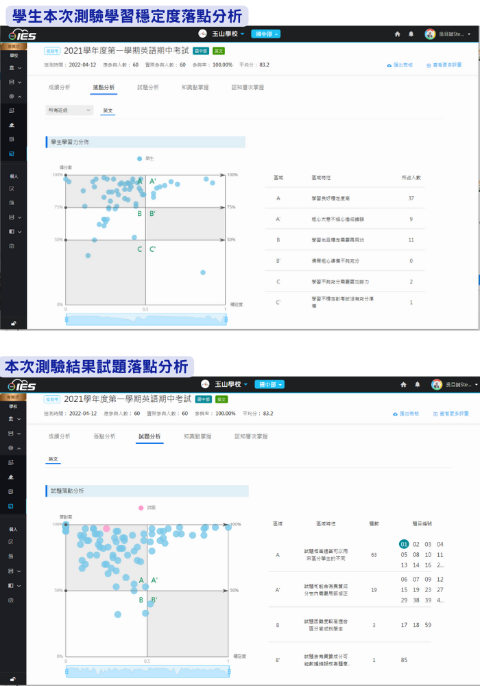 ●老師可透過落點分析,掌握學生學習力&穩定度