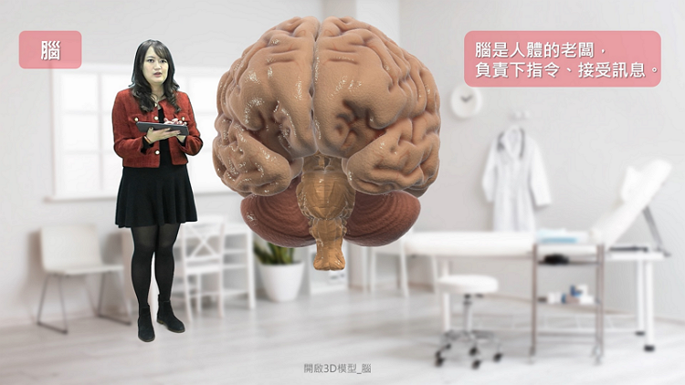 比起傳統的教材示意圖、字卡圖卡或黑板繪圖等方法,講者僅需平板即可操控量身打造的模型教材,以更活潑的方式進行教學,教材元素可以是圖片、影片、教材與可活動的 3D 物件,例如:全口乳齒、全口恆齒及單顆牙齒模型、眼睛剖面構造模型及各項常見人體器官模型,利用 MR技術實際操作演示,著重「沉浸感」和「虛擬互動」等元素,讓整個教學內容更具體,也更活潑。