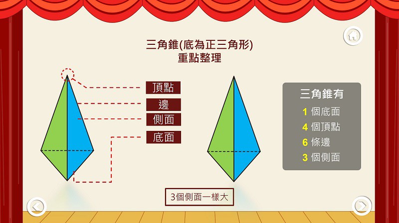 依教學重點提供立體形體組成圖形拆解、立體形體展開、立體轉透視、立體展開成平面等數位教材,
