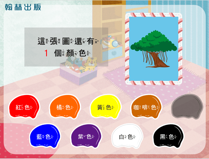 課本對應本單元以「色彩」為主題的知識點規劃互動教學遊戲, 課中透過老師的引導教學,讓學生能夠在課堂上在了解教材內容後立即做一個互動體驗,不但能快速的學會顏色的區別外,亦可更深入的了解生活中各式顏色在物品上的運用。課後亦可讓學生以遊戲的方式進行複習,再透過教材內的知識點去做一個學習上面的延伸,互動遊戲不僅能給予學生最正確的顏色對答機制,亦可在現實生活中做一個最即時學習體驗回饋,提升生活中色彩的基本學習素養。