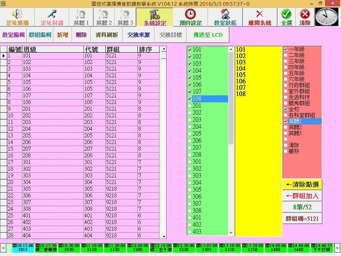 16.系統可直接設定班級年級,群組,播放影音檔案名稱等參數以因應年度班級調整之功能。