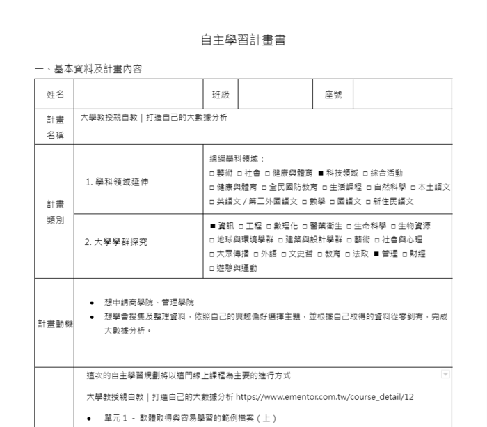 大數據是趨勢是現在青年學子應具備的能力,這門課程你將學會產出有意義的分析報告,作為大學入學的學習歷程的作品,舉例來說,你將完成國際組織例如OECD國家與其他國家之間重要的總體經濟數據,如GDP、人口數、通膨率的比較。