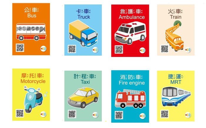 9套不同主題的圖卡套組,不僅有可愛的圖片還附上中英發音,針對不同主題透過文字語音引領孩子認識相關知識。