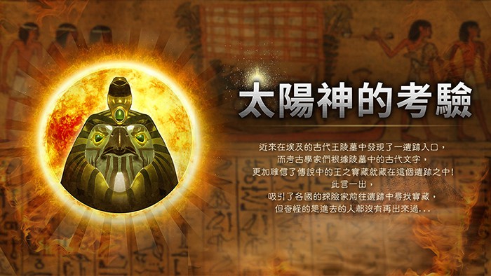 近來在埃及的古代王陵墓中發現了一遺跡入口,而考古學家們根據陵墓中的古代文字,更加確信了傳說中的王之寶藏就藏在這個遺跡之中!此言一出,吸引了各國的探險家前往遺跡中尋找寶藏,但奇怪的是進去的人都沒有再出來過…