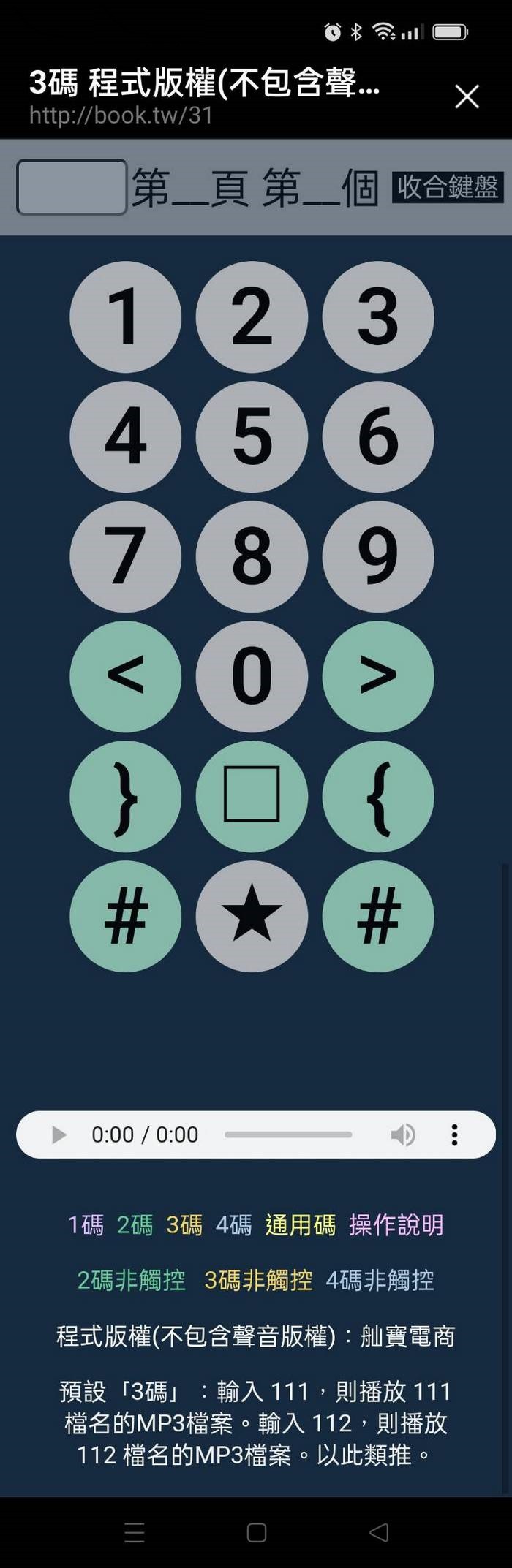 3.按同頁鍵就可出現同一頁的頁碼,再按尾碼,即可發音。按重複鍵就可重複播放聲音。按某一鍵可播放上一個、下一個、上一頁、下一頁的聲音。
