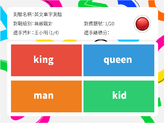 於每人手上個別平板端搶答後答題,作答結果依測驗進行排行,學生可持續累積作答總積分,教師可運用排行或積分制定獎勵機制,樂奇育AI STEAM應用科技載具遊戲化翻轉傳統課室學習評量的樂趣!!