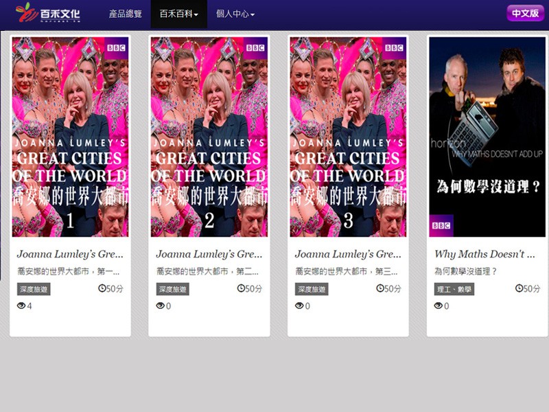 進入本平臺時,只要使用帳號密碼,就可在任何地點順暢地觀看串流影片。請在首頁輸入由百禾為您設定的帳號密碼之後,選取百禾百科入口進入。影片內頁的全螢幕功能適合課堂內播放。為強化影音教育的機能,平臺特別設計的影片播放頁面內附帶中文全字幕內容,方便使用者直接用文字搜尋的方式,找到理想中的影片段落。