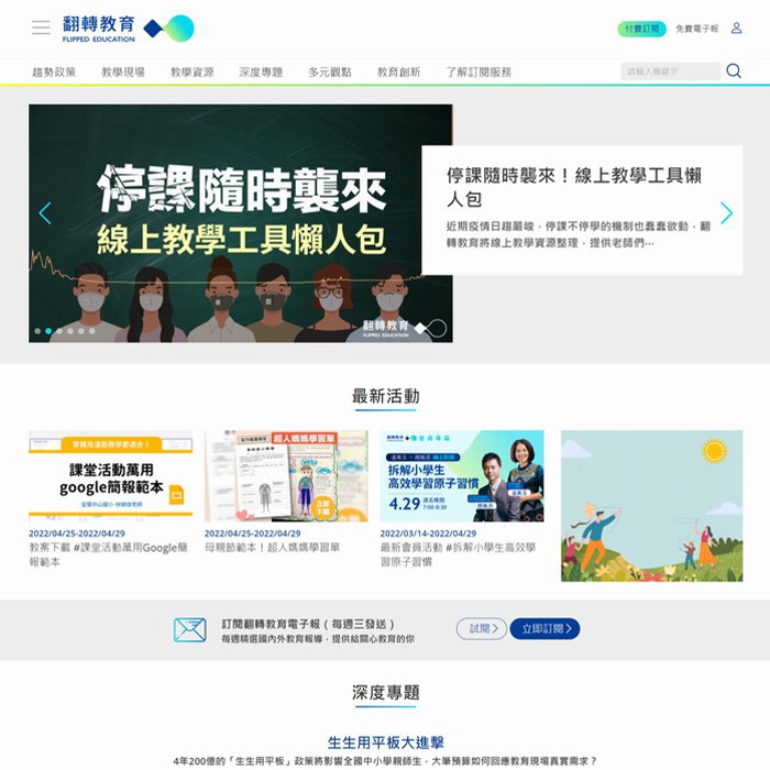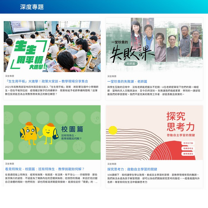 引進國內外教育趨勢,提供深度教育專題報導;全站超過30位跨領域專家駐站,每月一觀點為所有教育工作者打開更寬廣的視角、更深度的見解。