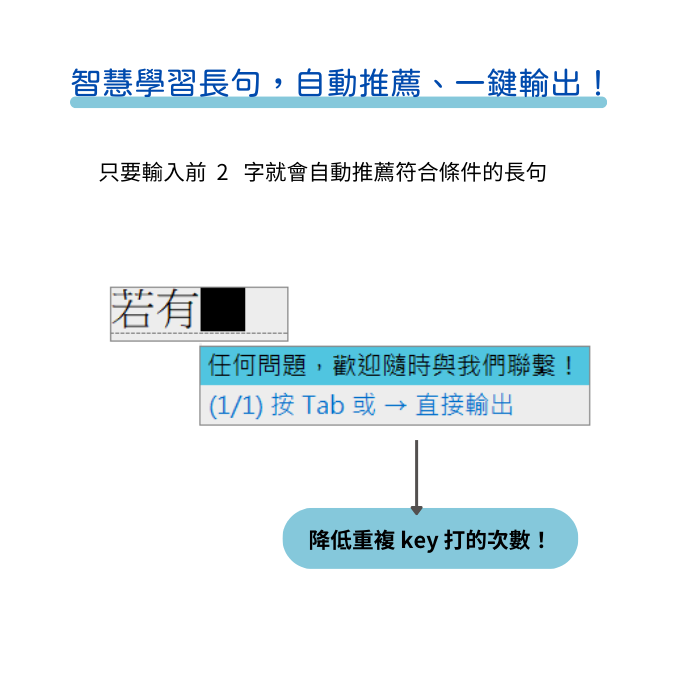 NEW!⑥ 長句聯想:自動學習長句,智慧推薦一鍵送出