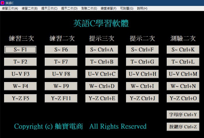 4.區分練習題、提示題、測驗題、可跳題。只要不超出題數範圍,可跳題的部分,按PageDown鍵可跳至下一題,按PageUp鍵可跳至上一題,按Insert鍵可重複該題,按PauseBreak鍵可往下跳十題。