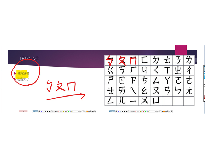 看的全 - 支援全畫面簡報播放,支援導入教學簡報內容,讓簡報清楚展現,隨課程內容隨時書寫重點。