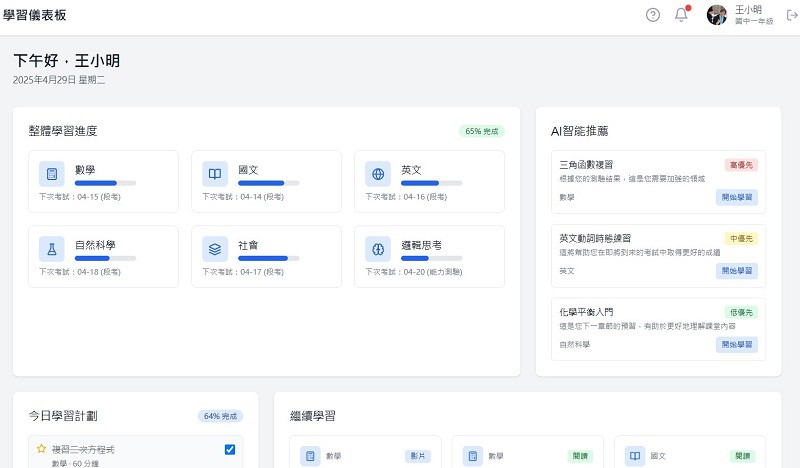 首頁課堂教學軟體 閃電AI學習統籌教育系統