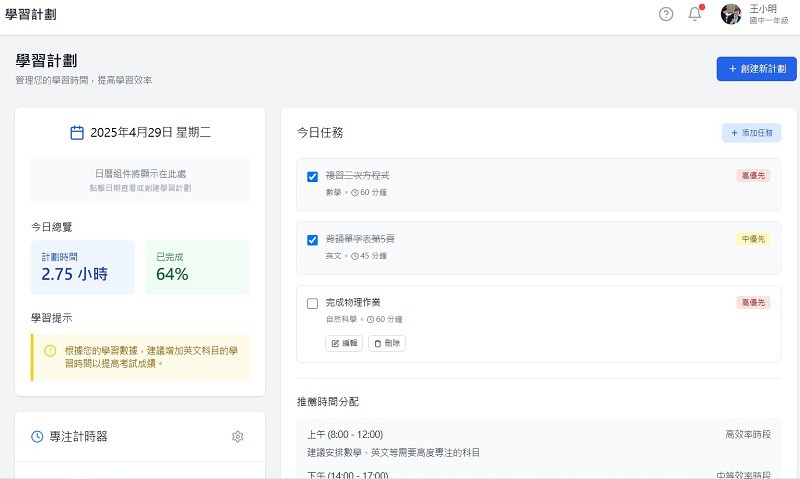 閃電AI學習統籌教育系統以其創新的整合理念和先進技術,為學生提供卓越的學習管理體驗。首先,系統採用「AI學習教練」技術,為每位學生配備虛擬學習教練,提供個性化的學習指導、進度監督和情緒支持,就像一位24小時在線的專業輔導老師。其次,系統的「智能時間管理」功能根據學生的學習目標、能力水平和可用時間,自動生成最優的學習計劃和時間分配,幫助學生平衡各科學習和提高時間利用效率。第三,系統獨創的「知識關聯推薦」算法能夠識別學生正在學習的知識點與其他學科相關知識的連接,適時推薦跨學科學習內容,促進知識融會貫通。第四,「學習行為分析」功能通過追蹤學生的學習模式、習慣和偏好,提供學習方法的改進建議,幫助學生養成高效的學習習慣。第五,系統的「考試模擬與預測」模塊根據學生的學習數據和歷年考試趨勢,預測可能的考點和題型,並生成個性化的模擬試卷,幫助學生有針對性地備考。最後,系統提供「家長教師協作」平台,讓家長和教師能夠了解學生的學習情況,並提供適當的支持和指導。這些特色使閃電AI學習統籌教育系統成為學生、家長和教師的理想學習管理工具,全面提升學習效果和考試成績。