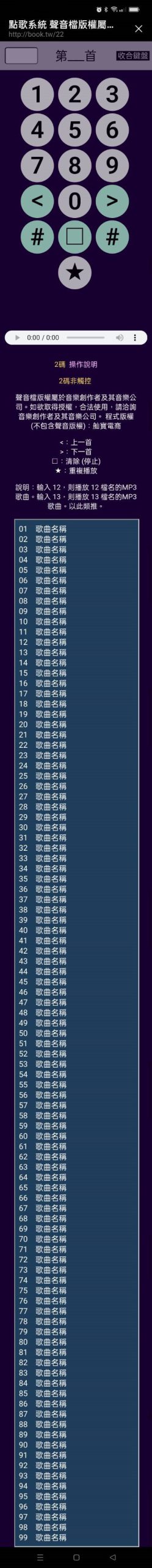 2.使用手機、平板電腦掃描QRcode按連結或輸入網址就可進入操作介面,只要按兩個數字就可播歌,非常便利。