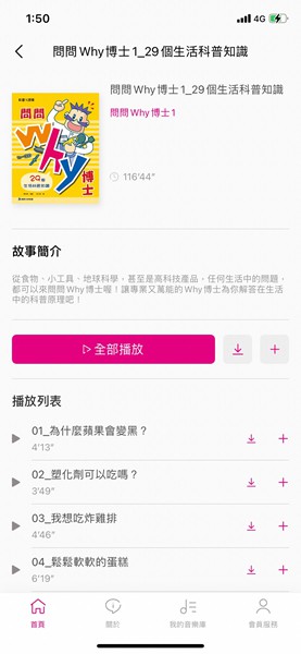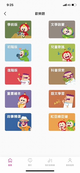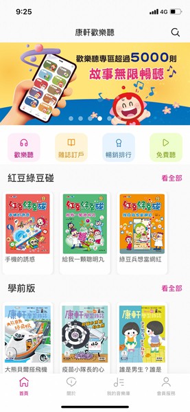 各種繪本故事、歌謠、文學啟蒙、語言學習、雜誌各期專輯,0-12歲隨時隨地都可Fun心聽。