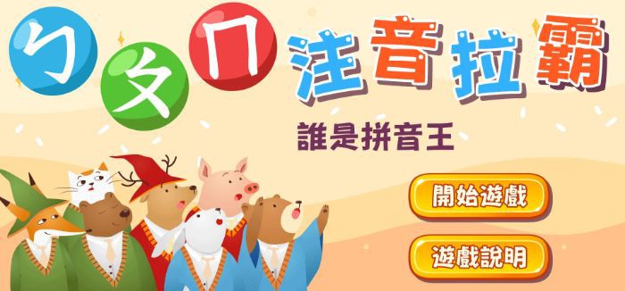(1)注音拉霸:以簡易的「拉霸遊戲」讓學生以趣味方式加強注音的拼音練習,只要點選「拉霸按鈕」就會有新的注音組合,讓學生重複練習,進而熟練各種拼音組合。