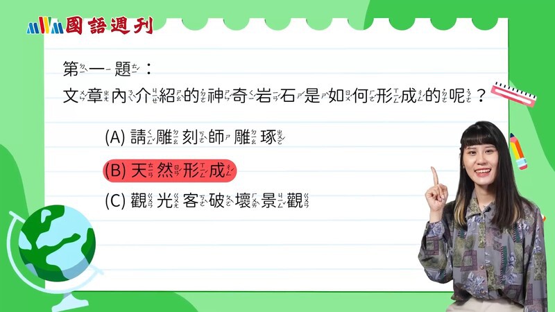 互動式影音:影片中包含測驗、練習及語文知識互動式小遊戲,透過互動讓學習更有趣