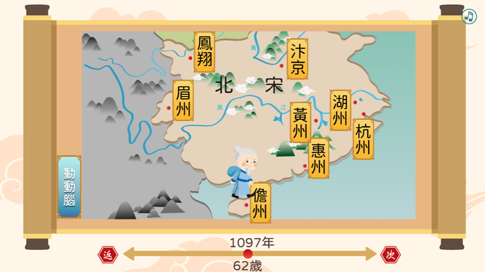 ????豐富資源:收錄蘇軾重要生平、代表作品、Google地圖實景,還有貼心語譯小視窗幫助教學