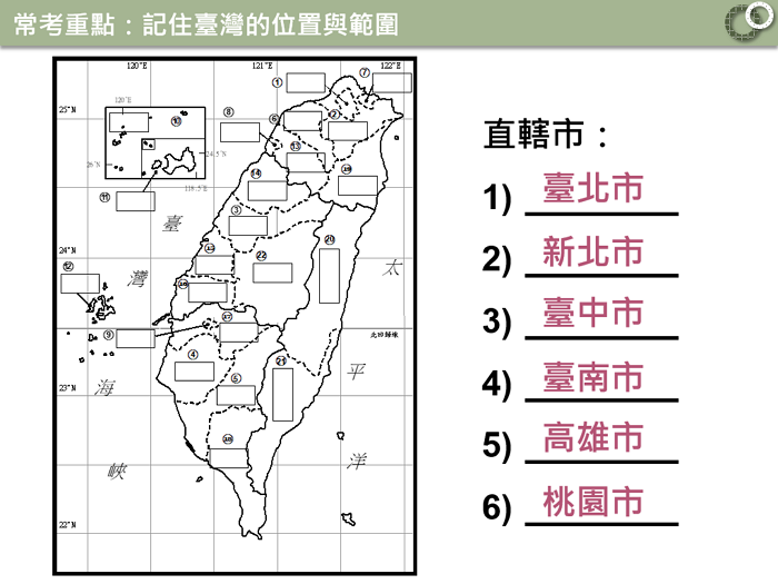 1. 臺灣地理基礎記憶—近年來,重視本土自然環境認知的題目,是出題的主流,需要很穩定的基礎知識記憶,可以靠反覆練習來掌握。