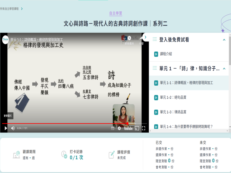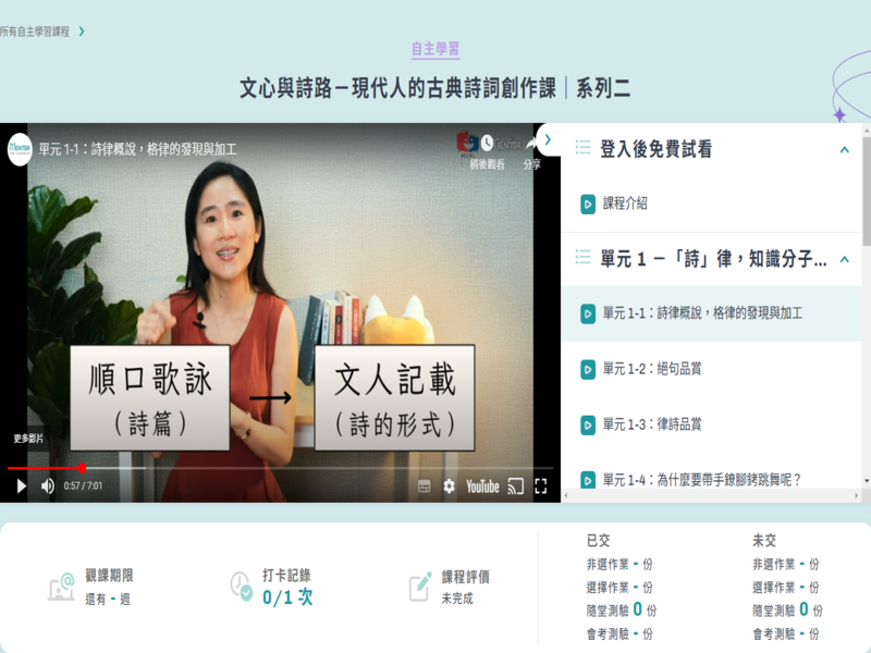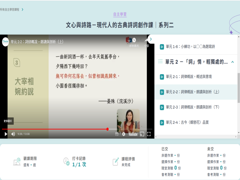 首頁數位內容 【文心與詩路 , 現代人的古典詩詞創作課 (系列二 ) 】 李佩蓉老師——景美女中教師、政大師培中心兼任助理教授、暢談國文計劃發起人
