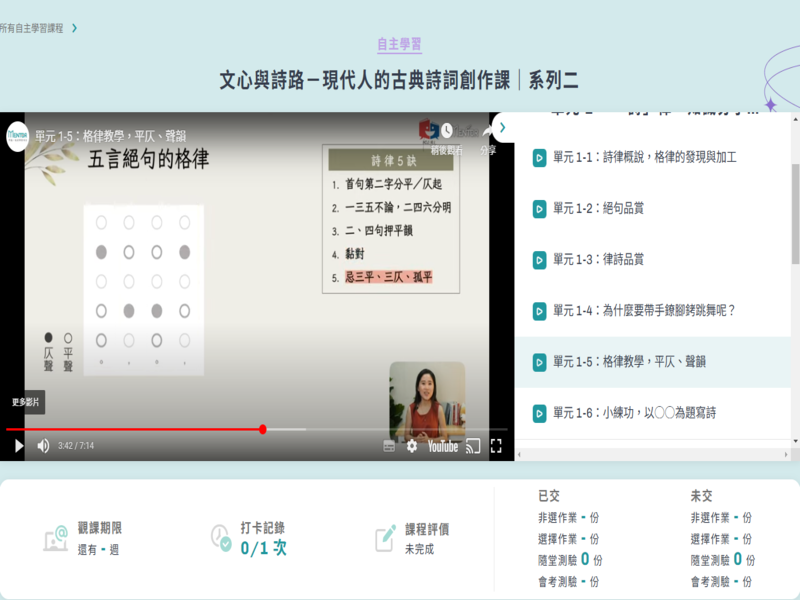 ・提供自主學習計畫表與課程筆記,搭配課程使用。