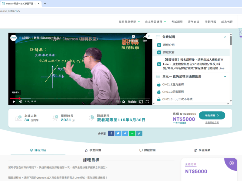 【高職數學線上課程B版第三冊】陳權老師——教師可透過數據掌握學生觀課時間與進度
