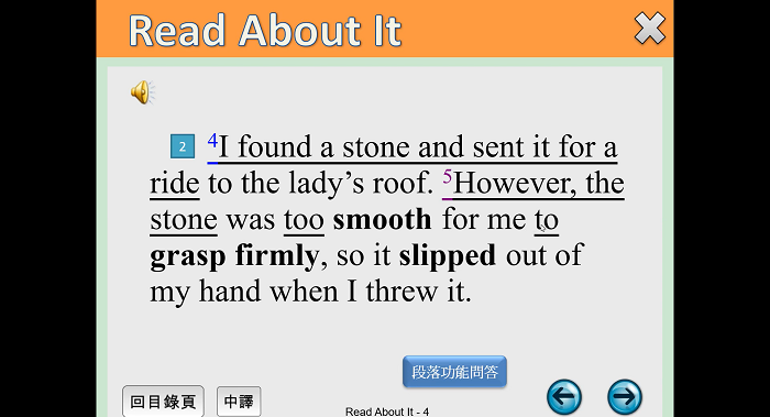 ☆課文教學影片從暖身活動、閱讀策略開始解說,課文教學一氣呵成。