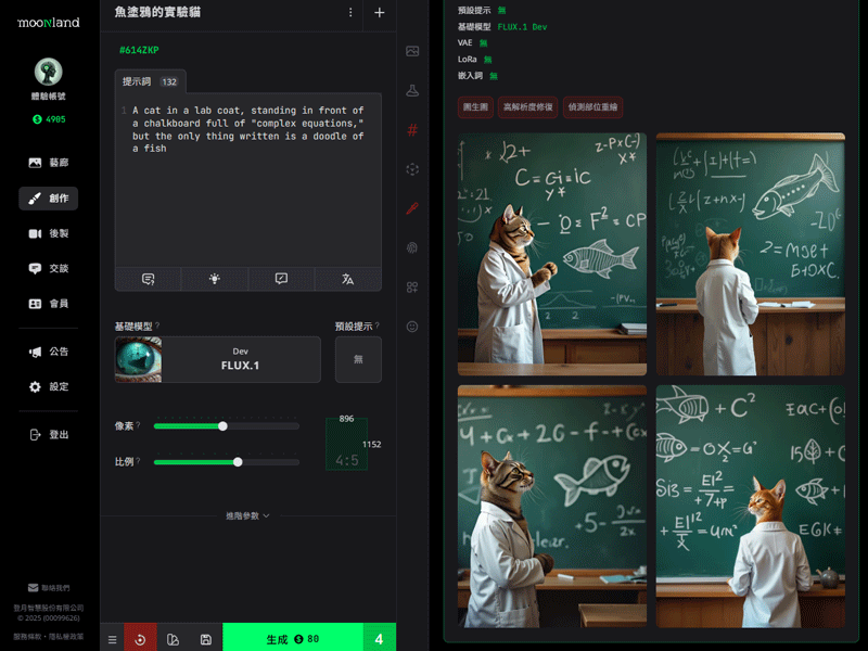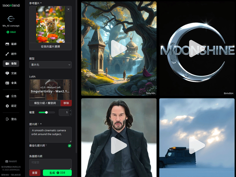 同時「Moonland.ai」也整合多樣風格模型、控制參數與專案管理系統,從寫實風、插畫風到實驗性視覺發想,皆能精準呈現創意構想,並且有效進行資料歸檔整理。