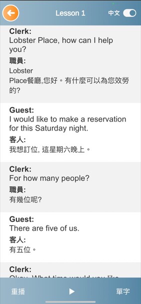 3.提供課文中英對照、逐句播放、重要單字等功能。
