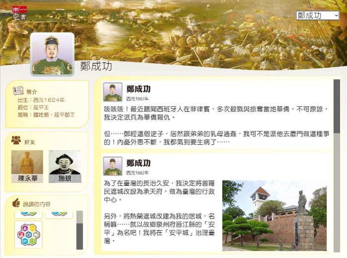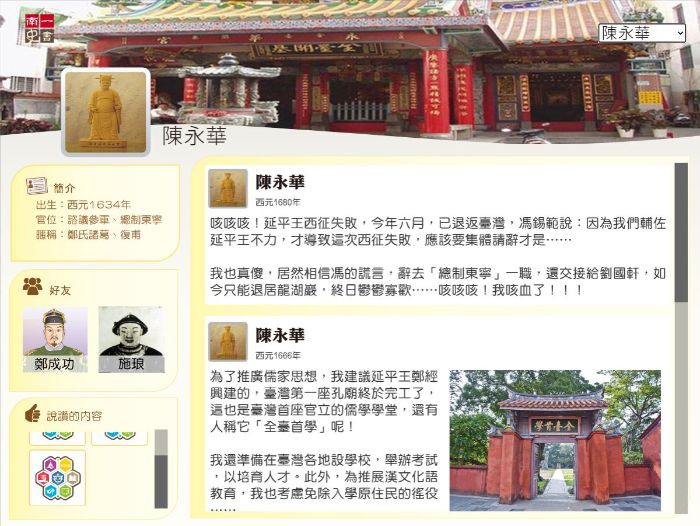 1.內容說明:以「社群軟體─臉書」的形式,帶領學生走臺灣歷史人物的世界。