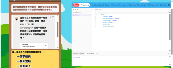 2.對話式學習引導:學生使用自然語言與AI對話,完成專題設定與邏輯拆解。