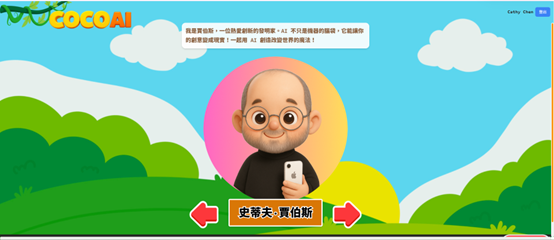 1.AI導師系統:包含牛頓、達文西、賈伯斯等人格特質與專業素養明顯的AI導師,擬人化陪伴學習。