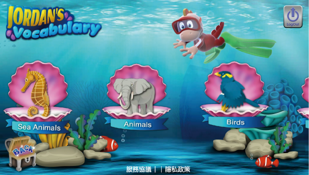 5.每個主題都配有不同的數位互動式遊戲,如海中動物(釣魚遊戲)、動物(爬樹拼字母)、鳥類(救鳥)、昆蟲(青蛙過馬路)、水果(兔子搶水果)、蔬菜(蔬菜記憶)、顏色(顏色回家記)、服飾(收衣服),多樣化的遊戲模式讓學單字變得更加容易。