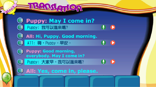 3.主題故事、會話練習、字母練習、自然發音等多種學習面向皆在動漫中呈現,並串連互動遊戲創造更活潑的學習情境。