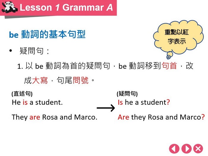 5.文法說明用中文重點套色字:每個文法皆有搭配中文說明(紅字標示重點),幫助學生清楚看見重點與理解文法用法