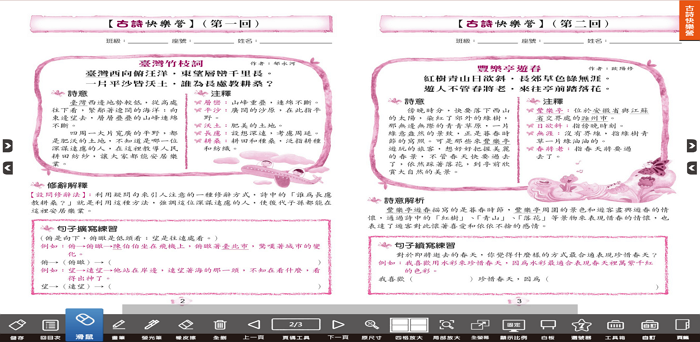 二、學習古詩也能輕鬆又愉快,適合該年級能力之古詩作品5首,提供詩意、測驗題,增強學生古詩能力