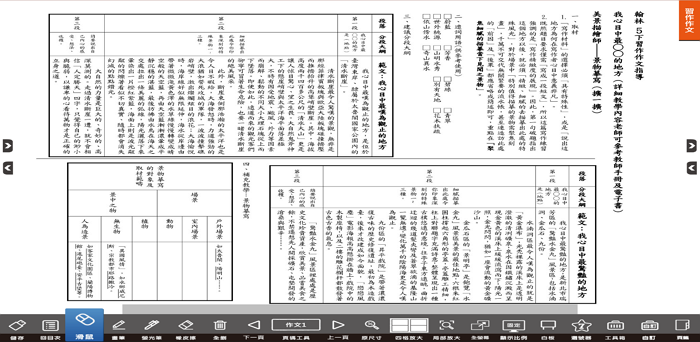 2.下方操作工具列(滑鼠、畫筆、螢光筆、橡皮擦、全刪、四格放大、局部放大、上下頁、便利貼、連結、插入文字、插入注釋、可撕貼紙...等),是學生配合學校教學進度進行數位學習不可或缺的工具。