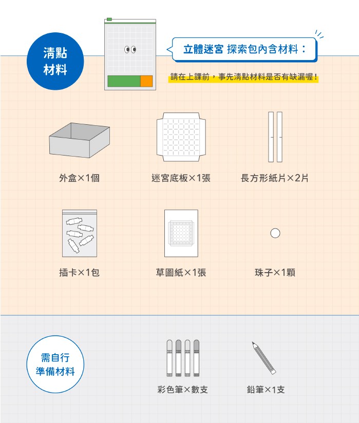 ※ 此線上課程必須搭配國小數感宇宙探索課程【立體迷宮】材料包使用(https://numeracylab.com/product/marblemaze) ,採購後提供包含永久觀看的線上課程影片及探索包,提供學生學習。