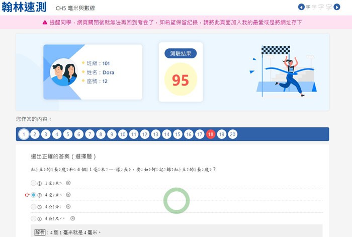 5.系統自動批改:報表清晰,全班成績一目瞭然,能快速掌握學生學習狀況