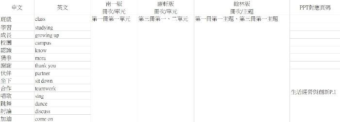 (2)國小綜合活動學科重點字彙中英對照表(含適用版本分析):內容有單元重點字彙中英文內容、各家版本對應冊次、單字教材檔名等貼心好用資料。