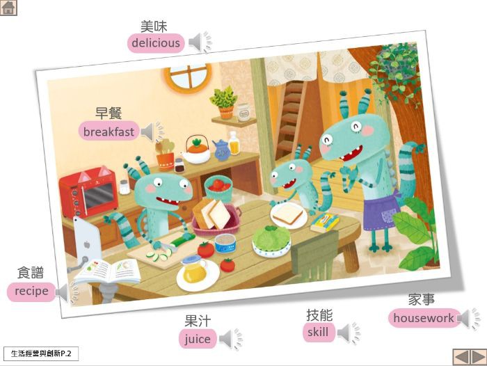 (1)雙語綜合活動主題式單字教材(含外師發音音檔):依主題規畫雙語字彙,製作單字教材,並貼心加上外籍老師的單字發音音檔,方便老師備課、教學播放等。
