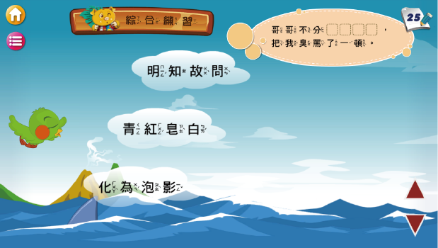 3.除了互動式學習課程,每課更包含四個遊戲單元,共二十四個益智評量遊戲,用不同的遊戲模式測驗學習效果,如下: