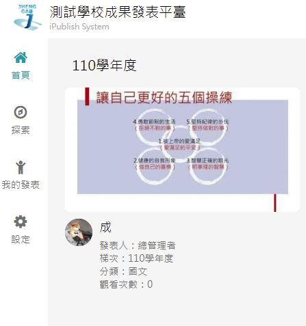 1.系統能隨機挑選學生已發布的照片或影片,成果發表輪播。