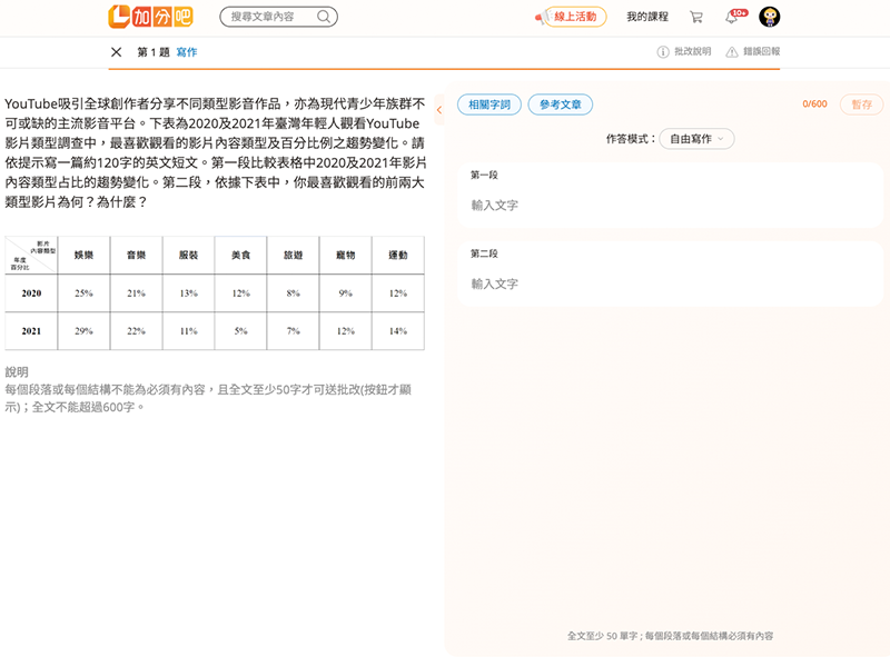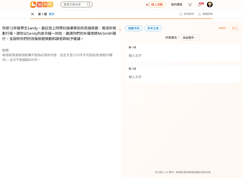 【輕鬆指派,鼓勵多寫多練】教師可輕鬆安排學習進度並指派題目,學生可在電腦、平板或手機上進行便捷的寫作練習。