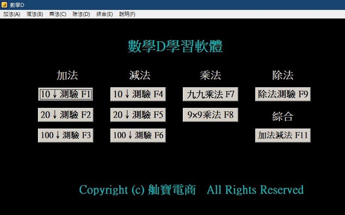 4.按功能鍵 F1~F9、F11 可出現數學算式,利用鍵盤直接輸入答案即可。