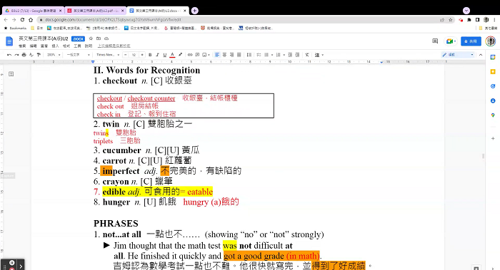 東大版本技術高中英文的每個單元皆有提供課文、單字的教學講解影片,由前線的教師精心錄製,將整篇課文和單字片語逐一詳細解說。不僅可用於數位課堂,也能運用在遠端教學。學生能在課外時間能觀看課文單字教學講解影片,此影片更是段考前複習的一大利器。
