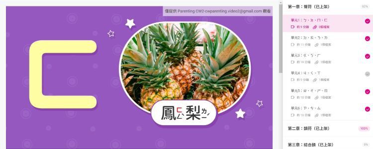 本課程再次邀請《ㄅㄆㄇ兒童注音趴》的專業配音老師為孩子講解內容,讓孩子聽著最標準、清晰又熟悉的發音來學習拼音。